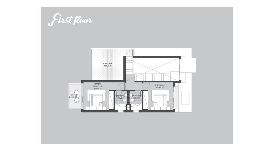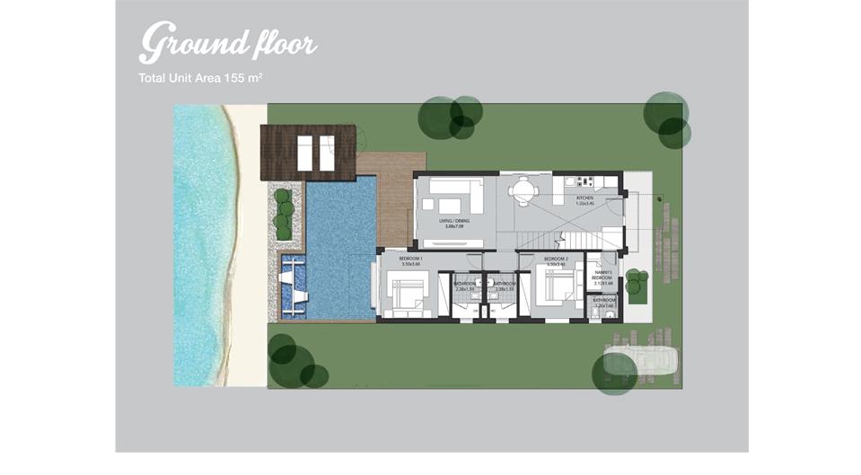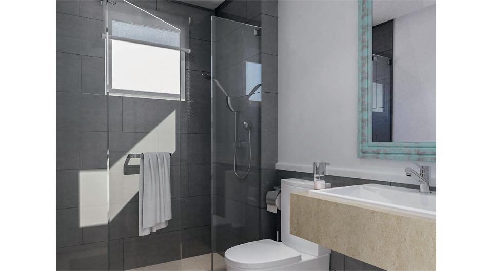 An abundance of sunlight shines through these elegant villas caused by the large glazed areas, providing an airy ambiance. Offered in two different designs, homeowners can choose between a three bedroom villa or a four bedroom villa with a nanny’s room. Homeowners have access to a spacious garden and a rooftop terrace providing an unmatched view of the seemingly infinite clear blue lake.